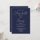 Este convite de casamento em azul marinho com letra elegante minimalista pode ser personalizado com suas informações em tipografia sofisticada com os detalhes do seu site de casamento e seu código QR no verso. Projetado por Thisisnotme©