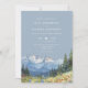 Este convite de casamento com montanha de aquarela azul empoeirado e flores silvestres pode ser personalizado com suas informações em tipografia elegante com o código QR do site do seu casamento no verso. Projetado por Thisisnotme©
