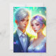 Belo casal com sotaque, púrpura e azul acentos anime convite de casamento temático.