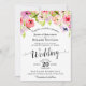Este belo convite para o casamento apresenta um design leve e arejado com flores silvestres coloridas ou pansias coloridas em fundo branco. Há caligrafia antiga e texto formal, fazer este convite perfeito para uma cerimônia de primavera ou verão de qualquer tipo.