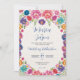 Este design de Convite para Casamento de Fiesta Botânica Colorida Mexicana, rebenta com flores vibrantes desenhadas à mão numa variedade de cores brilhantes, incluindo tons de rosa, roxo, amarelo e turquesa, que formam uma fronteira ao redor do espaço central. Os detalhes intrincados das pétalas e folhas, juntamente com pequenos sotaques florais e verde, dão à disposição uma atmosfera viva e alegre. O olhar geral é inspirado pela arte popular mexicana, com um sentimento festivo e brincalhão perfeito para uma ocasião comemorativa como um casamento.