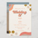 Retro groovy convite de casamento colorido Replique e alegre, este convite é perfeito para uma celebração divertida e festiva. Apresentando cores brilhantes, gráficos brancos e uma fonte divertida, ele define um tom otimista e energético, colocando seus convidados no humor para festas.