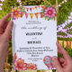 Personalize este vibrante Convite Mexicano ao Casamento, perfeito para comemorar com um tema alegre do Casamento Fiesta. Este belo convite apresenta uma exibição impressionante de flores rosa, laranja e amarelas brilhantes, maravilhosamente organizadas sobre um fundo branco nítido. O design é ainda mais acentuado com as brincalhonas florais cor-de-rosa e laranja, capturando a essência de uma celebração festiva mexicana. Os padrões coloridos e animados criam uma atmosfera de alegria e entusiasmo, enquanto o estilo preto mexicano e a letra do script adicionam um toque elegante. Este convite do Fiesta Wedding traz um toque de elegância e uma explosão de cor para a sua festa Fiesta!