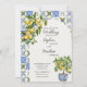 Convite de casamento de Lemon Grove com a armação. A design apresenta um limoeiro, azulejos mediterrânicos azuis e amarelos, um ramo de limões e flores. Perfeito para um tema de casamento de limão, o casamento inspirado em italiano, a estética da vila rustica do Mediterrâneo, as cores de casamento azuis e amarelas ou um casamento ao ar livre a qualquer momento do ano. Para coordenar convites, artigos de papelaria, dia de evento e decoração de mesas, jogos e placas de casamento, por favor, navegue na minha Coleção de Casamentos de Limão Grove ou me mande mensagens para adicionar quaisquer itens adicionais de que você precise.