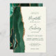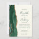A borda esquerda deste elegante convite de casamento moderno apresenta uma esmeralda verde aquarela agate borda com falsa brilho dourado. O texto personalizável combina letra de escrita manual, placa de impressão e fontes itálicas em verde esmeralda sobre fundo de marfim. O verso apresenta um design emerald verde e dourado.