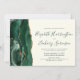 A borda esquerda deste elegante convite de casamento moderno apresenta uma esmeralda verde aquarela agate borda com falsa brilho dourado. O texto personalizável combina manuscrito verde, fontes em copperplate e itálico em um fundo de marfim. O verso apresenta um design emerald verde e dourado.