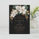 Este elegante design de convite para o casamento apresenta florais lindos em fundo com tipografia clássica. Esta design é a escolha perfeita para um casamento rústico mas elegante no final do verão ou no outono.