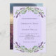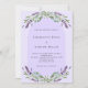 Um fundo violeta decorado com flores lavandas roxas, verde eucalipto e armação de arco. Personalize e seus nomes e detalhes. Voltar: Personalize e adicione sua foto