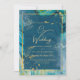 Convites Casamento com Abstrato de Pavock Blue Dourado INK