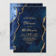 Convite para Casamento de Agatos Azuis Marble, Marinho Dourado moderno.