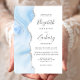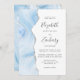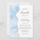 A borda esquerda deste elegante convite de casamento moderno apresenta uma cor azul-d-água pastel, cor-d-água, aparada com falso brilho prateado. O texto personalizável combina manuscrito, copperplate e fontes itálicas em cinzas de carvão em um fundo branco. O verso apresenta um design de agata prateado e azul-bebê correspondente.