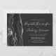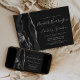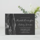 A borda esquerda deste elegante convite de casamento moderno apresenta uma coloração aquosa preta e borda agitada com falso brilho prateado. O texto personalizável combina escrita manual, placa de impressão e fontes itálicas em cinzas prateadas em um fundo fora do preto. O verso apresenta um design de agata preto e prateado correspondente.
