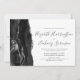 A borda esquerda deste elegante convite de casamento moderno apresenta uma coloração aquosa preta e borda agitada com falso brilho prateado. O texto personalizável combina manuscrito, copperplate e fontes itálicas em cinzas de carvão em um fundo branco. O verso apresenta um design de agata preto e prateado correspondente.