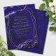 Design de casamento moderno. Geodo de aquarela com elementos de arte digital, tons de azul profundo, roxo, ouro rosa e ouro (ouro não é ouro real, mas cor), preto. Caligrafia elegante. Elementos geométricos. Fundo de cor da água azul profunda. Negrito, moderno, contraste, saturado, notável, único.