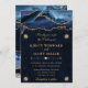 Convites Casamento com Agitação Azul Elegante e Dourada