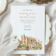 Convide seus convidados para uma celebração com este belo convite para o casamento, apresentando a atordoante Catedral de Palma em Maiorca, Espanha. A frente mostra a catedral majestosa e os prédios ao redor, com palmeiras somando ao charme tropical. A cena é feita em um estilo de aquarela suave, artística, evocando a beleza mediterrânica da ilha. O reverso, projetado para "Os Detalhes Mais Finos", continua este tema adorável, oferecendo uma visão diferente com a catedral e a vila. Este convite é perfeito para um casamento de destino em Maiorca, uma celebração de temas espanhóis ou mediterrânicos, ou para qualquer casal que aprecie uma boa arquitetura e uma estética romântica sofisticada para o seu dia especial.