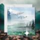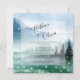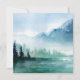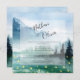 Um convite de casamento temático rústico para uma cerimônia inspirada pela natureza, com um fundo cativo de aquarela que apresenta um céu azul, montanhas, pinheiros verdes, e vagalumes sobre um lago sereno, invocando a magia do exterior. elegância russa que combina o encanto da natureza selvagem com um toque de refinamento, perfeito para um casamento de destino.