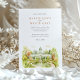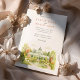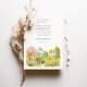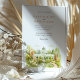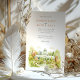 Convide seus convidados para uma comemoração impressionante com este convite romântico de casamento de aquarela, mostrando maravilhosamente o icônico conservatório no Jardim Botânico do Brooklyn. O trabalho de arte da frente captura a beleza serena do outono, com a elegante estufa e sua cúpula distinta refletida numa piscina tranquila. As árvores circundantes apresentam uma paleta quente de amarelos ouros e laranjas enferrujadas. O verso oferece "Os Detalhes Mais Finos" e continua o tema do jardim com uma agradável cena de primavera ou verão. Apresenta o mesmo impressionante conservatório, agora acompanhado de uma encantadora ponte de madeira sobre uma lagoa serena, uma magnífica árvore-rosa florescente (reminiscente das flores de cereja), e elegantes flores-rosa-alta e branca, possivelmente tulipas ou lírios, enrolando uma trajetória de jardim. Criado em um estilo aquoso suave e elegante, este convite é perfeito para casais que amam a natureza, casamentos de jardim, ou aqueles que buscam um toque de charme clássico de Nova York. A mistura de representações sazonais acrescenta um apelo único, ao longo do ano. A paleta de cores inclui verduras macias, brancos, cremes, azuis claros do vidro, pinças vibrantes das flores e tulipas, e amarelos quentes do ouro e laranjas da folhagem do outono.