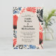 Este convite para o casamento, que chama a atenção, apresenta um espetáculo de arco dramático, enquadrado por trabalho de arte floral vermelho, preto, azul e creme. A paleta de cores ousadas e a tipografia moderna criam um design único que é elegante e contemporâneo. Perfeito para casais que querem que a sua papelaria de casamento se destaque, este convite é ideal para o outono ou casamentos no inverno, comemorações da noite ou eventos da na moda.