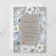 Este design encantador apresenta uma paleta cinza suave acentuada com tons azuis frios e delicadas flores brancas. Um arco gracioso de cristais e flores etéreas evoca um clima romântico e caprichoso, perfeito para uma união mágica. A obra de arte apresenta rosas, flores semelhantes ao cardo e sugestões sutis de coral.