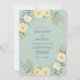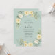 Este design apresenta um cenário sereno em verde menta adornado com flores delicadas e folhagens. Flores brancas cremosas e amarelas suaves se desdobram em um arco suave, acentuadas por folhagens tênues. Evoca um sentimento de elegância pacífica e natural.