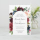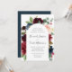 Nosso convite para o casamento do Radiant Bloom rodeia os detalhes do seu dia de casamento com um arco de flores pintadas de aquarela em burgundy marsala, cor-de-rosa e azul-marinho, com folhagem botânica verde e folhas de eucalipto. Uma bela escolha em cores exuberantes e saturadas para outono ou casamentos no inverno.