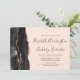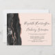 A borda esquerda deste elegante convite de casamento moderno apresenta uma coloração aquosa preta, borda agitada, aparada com falso rosa dourado. O texto personalizável combina fontes de letra manuscrita, copperplate e itálico em preto de ardósia em um fundo cor-de-rosa pincelado. O verso apresenta um design de agate preto e rosa dourado correspondente.