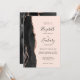 A borda esquerda deste elegante convite de casamento moderno apresenta uma coloração aquosa preta, borda agitada, aparada com falso rosa dourado. O texto personalizável combina manuscrito fora de preto, fontes em copperplate e itálico em um fundo cor-de-rosa pincelado. O verso apresenta um design de agate preto e rosa dourado correspondente.