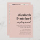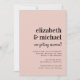 Mínimo convite de casamento cor-de-rosa, pincelado, com os nomes da noiva e do noivo e "estão se casando!" numa mistura de letras de tendências ousadas e um roteiro de na moda. Os detalhes do casamento estão em uma simples tipografia. No verso, adicione uma foto, o código QR do seu site de casamento para que seus convidados digitalizem para RSVP e obtenham os detalhes (por exemplo, instruções, acomodações, registro etc.) e seus nomes em um script semelhante a assinatura.