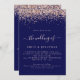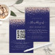 Casamento com Blush de Marinho de Código QR com Rosa de brilho Dourado Glitter. Uma borda de cintilação falsa em ouro rosa está em cada lado, e The Wedding Of em um script de escrita manual em rosa pincel suave com fundo azul marinho. Personalize facilmente o texto para seus próprios detalhes. Substitua o código QR de amostra no verso com sua própria orientação para a página de resposta do site do casamento. fazer conveniente que seus convidados revistem o rsvp e vejam mais detalhes sem a necessidade de RSVP separado e cartões de detalhes. Você pode criar códigos QR gratuitamente on-line. Basta pesquisar "Criador de código QR" e muitas opções surgem para criar gratuitamente.