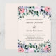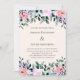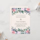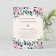 Um convite de casamento com um lindo desenho floral feito com aquarela. Flores de jardim rosa, roxo e verde.