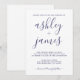 Convites Casamento com Caligrafia Azul Simples Marinho Chic