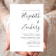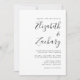 Este simples convite de casamento moderno mostra um texto negro sobre um fundo branco. Adicione os nomes da noiva e do noivo na caligrafia de escrita manual do na moda e os detalhes na fonte sans serif. O reverso é preto sólido.