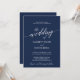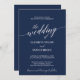 Esta carta de convite para casamento elegante para caligrafia de marinho é perfeita para um casamento outono. A simples design apresenta uma tipografia romântica e caprichosa sobre um fundo azul marinho. Para mais opções de texto de convite para o casamento, consulte a coleção de casamento elegante da caligrafia: https://www.zazzle.com/collections/119271177614507407