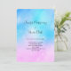 Convite de casamento com um fundo caprichoso. Uma paleta de cores de gradiente pastel rosa e azul. Pequenas estrelas brancas espalhadas por todo o lado. Design caprichoso e mágico.
