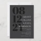 Convite de casamento para tipografia elegante em tons de cinza com sua data de casamento em grandes números ao lado do convite. Adicione nomes e palavras de casamento em uma cor de cinza mais leve.