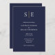 Este convite de casamento chic, minimalista, marinho azul e dourado pode ser personalizado com suas iniciais de monograma e informações do dia do casamento. Com os detalhes do seu site de casamento e o seu código QR no sentido inverso. Projetado por Thisnotme©