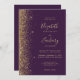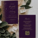 Convites Casamento com código QR de faux Dourado roxo escur
