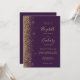 A borda esquerda deste elegante convite de casamento moderno apresenta um design dourado falso. O texto personalizável combina manuscrito pálido e dourado, fontes copperplate e itálico em um fundo roxo escuro. O verso fornece espaço para detalhes do casamento em um fundo roxo sólido, junto com um código QR que os convidados podem digitalizar para visitar seu site e RSVP, o que economiza o custo de imprimir e enviar cartões RSVP separados.