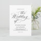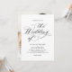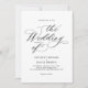 Este convite para o casamento apresenta uma design elegante e minimalista, com a caligrafia negra clássica e fontes serif em fundo branco.