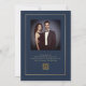 Este convite para casamento de fotos azuis e douradas é elegante e mínimo. É tão sofisticado com a simplicidade. Sua foto favorita arranca o dorso (com um filtro para adicionar sofisticação sutil) junto com um código QR que facilita aos convidados a obtenção dos detalhes do seu dia especial