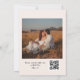 Nosso Convite para Casamento de Código QR de Foto Moderno é uma forma na moda para celebrar e compartilhar seu evento alegre. Este convite maravilhosamente moderno tem uma pitada de cor e uma bela escrita. Personalize facilmente a sua fotografia e o seu único código QR que direciona os seus convidados para todas as suas informações de casamento. Para alterar a cor e o texto do plano de fundo, clique no botão "Editar usando a ferramenta de Design".