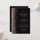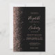 A margem esquerda deste elegante convite de casamento moderno apresenta um rosa dourado faux glitter design. O texto personalizável combina letras rosa pálidas, letras em copperplate e fontes itálicas em um fundo preto. O verso fornece espaço para detalhes do casamento em um fundo preto sólido, junto com um código QR que os convidados podem digitalizar para visitar seu site e RSVP, o que economiza o custo de imprimir e enviar cartões RSVP separados.