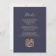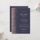 A margem esquerda deste elegante convite de casamento moderno apresenta um rosa dourado faux glitter design. O texto personalizável combina letras rosa pálidas, letras em copperplate e fontes itálicas em um fundo azul escuro. O verso fornece espaço para detalhes do casamento em um fundo azul escuro sólido, junto com um código QR que os convidados podem digitalizar para visitar seu site e RSVP, o que economiza o custo de imprimir e enviar cartões RSVP separados.