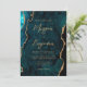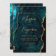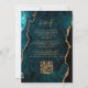 Este elegante convite de casamento apresenta uma imagem de fundo da cor azul lacrimogênea agada aparada com uma falso brilho dourado. O texto personalizável combina manuscrito, protetor e fontes itálicas de cor dourada. O verso fornece espaço para detalhes de casamento em um plano de fundo de agata de chá correspondente, juntamente com um código QR que os convidados podem digitalizar para visitar seu site e RSVP, o que economiza o custo de imprimir e enviar cartões RSVP separados.