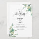 Este Convite de Casamento simples e elegante apresenta lindas ramificações de folha de cor aquática de eucalipto com uma cor aquosa, e foi combinado com uma caligrafia caprichosa e uma letra de serifa clássica em ouro e cinza. Para fazer alterações avançadas, selecione a opção "Clique para personalizar mais" em Personalizar este modelo.