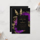 Convites Casamento com Código QR Dourado Roxo Floral Moody