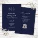 Este convite de casamento chic, minimalista, azul marinho e dourado pode ser personalizado com as iniciais do seu monograma e informações do dia do casamento. Com os detalhes do seu site de casamento e seu código QR no verso. Criado por Thisisnotme©