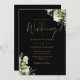 Este elegante verde botânico preto-e-ouro deixa convite para casamento pode ser personalizado com suas informações em tipografia química com seus detalhes do site de casamento e seu código QR no verso. Projetado por Thisnotme©