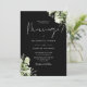Este elegante verde botânico preto-e-branco deixa convite para casamento pode ser personalizado com suas informações em tipografia química com seus detalhes do site de casamento e seu código QR no verso. Projetado por Thisnotme©